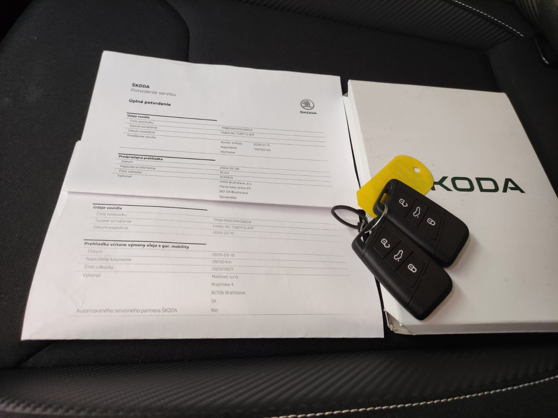Deze Fabia heeft bij 29.250 km op 10-3-2025 onderhoud gehad (toen zijn onder andere motorolie en oliefilter vernieuwd). Dit onderhoud staat digitaal geregistreerd in het serviceregister van Skoda, en een uitdraai is aanwezig.