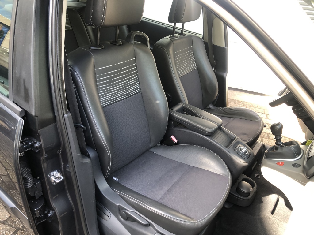 Het interieur van deze Scénic is afgewerkt met een combinatie van lederen en stoffen bekleding, wat niet alleen comfortabel is maar ook een luxe uitstraling geeft aan het geheel. De ruime en praktische indeling van het interieur maakt deze auto ideaal voor gezinsgebruik of voor mensen die regelmatig veel spullen moeten vervoeren.