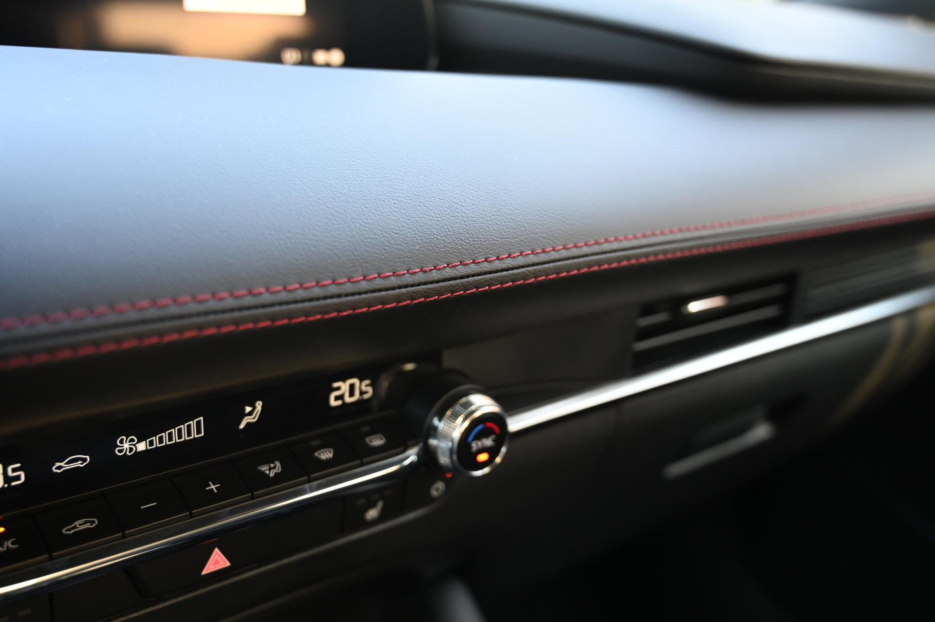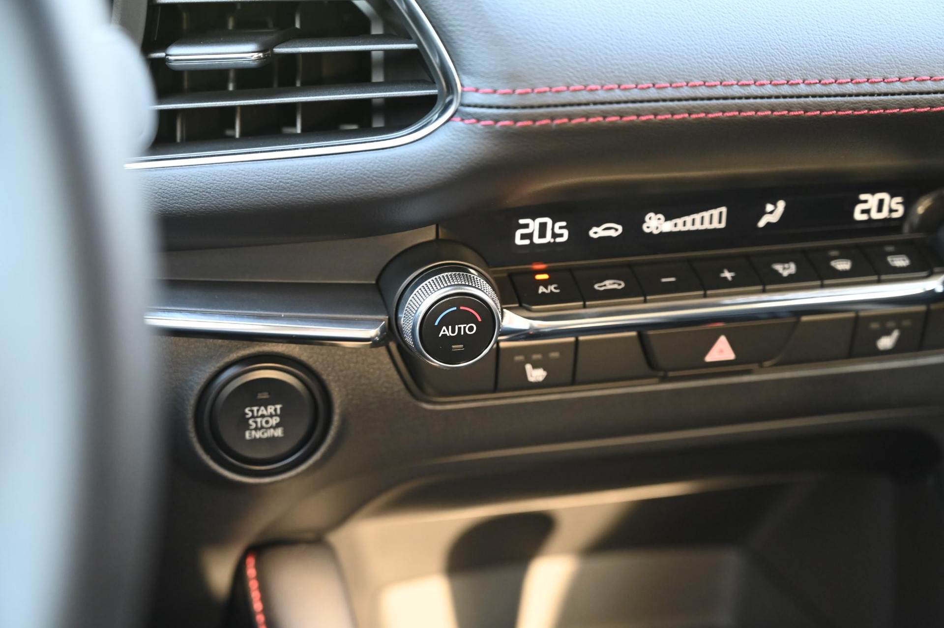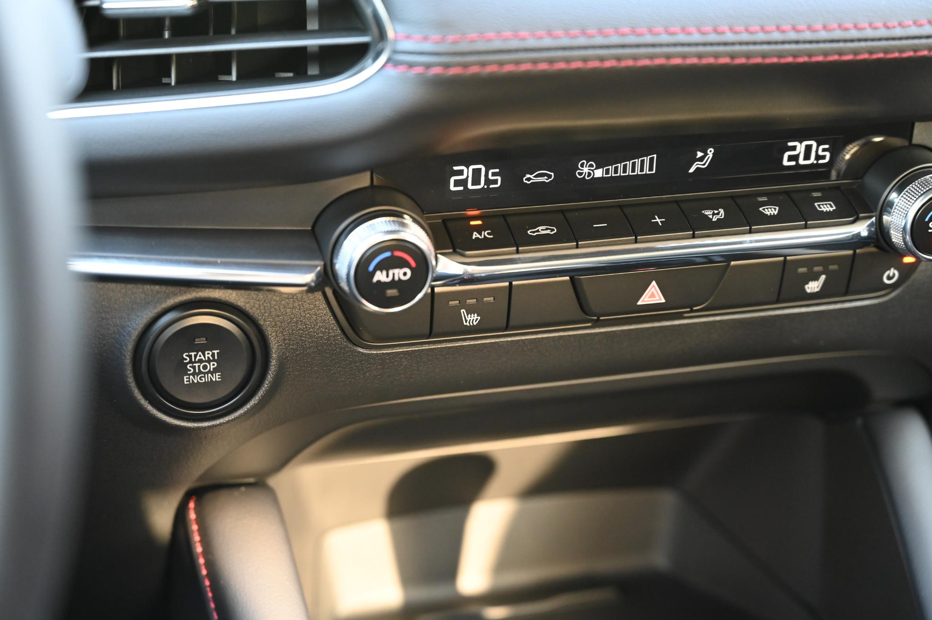 - Zwart stoffen interieur met rood stiksel