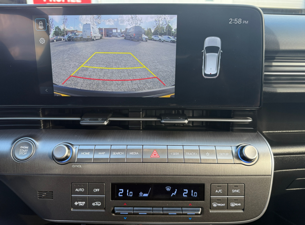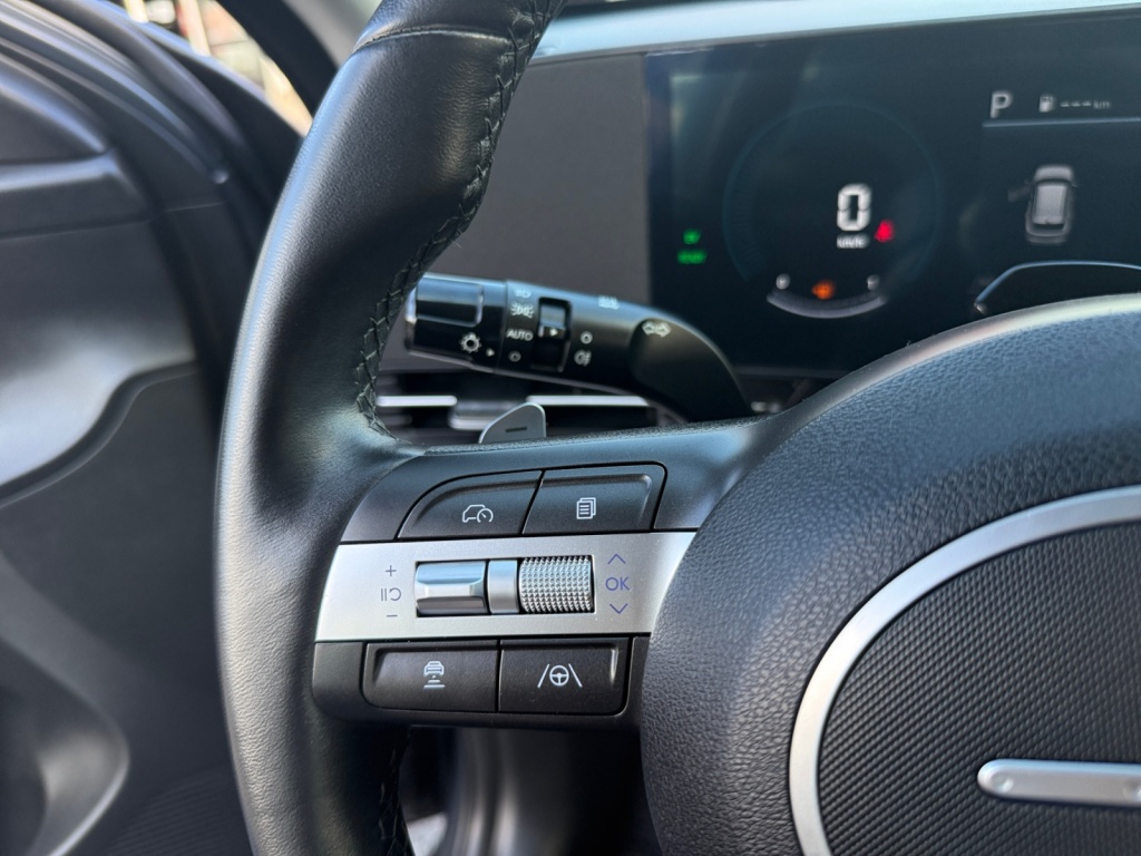Boem is ho? Dat is verleden tijd. De achteruitrijcamera laat precies zien hoeveel ruimte u achter nog heeft! Adaptive cruise control is veilig en comfortabel. De snelheidsregelaar houdt automatisch afstand tot het voertuig dat voor u rijdt. Wat is de onderhoudsstatus van deze auto? U checkt het snel, simpel en overal via uw smartphone. De bediening van het audiosysteem en het navigatiesysteem gebeurt met knoppen op het stuur en als u wilt zelfs met uw stem. De audio is overigens voorzien van DAB-radio voor een altijd heldere ontvangst. De automatische airconditioning zorgt voor een behaaglijk klimaat in de auto. U bent in deze Hyundai ook voorzien van schakelpaddles aan het stuur, regensensor, keyless entry, centrale deurvergrendeling met afstandsbediening, bagage afdekhoes en lederen versnellingspook.