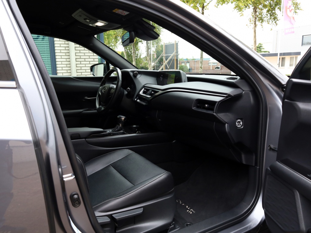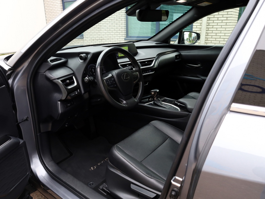Zeer mooie, sportieve en complete cross-over. Deze Lexus UX is afkomstig van de eerste eigenaar en heeft slechts 21.000 km gereden. Complete onderhoudshistorie bij de auto aanwezig. Geweldige uitstraling in Mercury Grey Metallic met vol zwart lederen interieur. De moderne hybride aandrijflijn aan boord van deze auto drijft alle vier de wielen aan. Dit geeft de auto grip en stabiliteit onder alle omstandigheden. Bovendien levert hij krachtige prestaties tegen een laag verbruik. Daarnaast is deze Lexus compleet uitgerust met onder andere stoelverwarming, parkeersensoren voor en achter en een head up display. GRATIS 12 MAANDEN BOVAG GARANTIE, BEURT, TENAAMSTELLING EN NIEUWE APK! Bovendien kunt u gebruik maken van tot 10 jaar Lexus Relax garantie. Bent u geïnteresseerd in deze auto, neem dan gerust contact met ons op voor een bezichtiging en/of overtuigende proefrit.