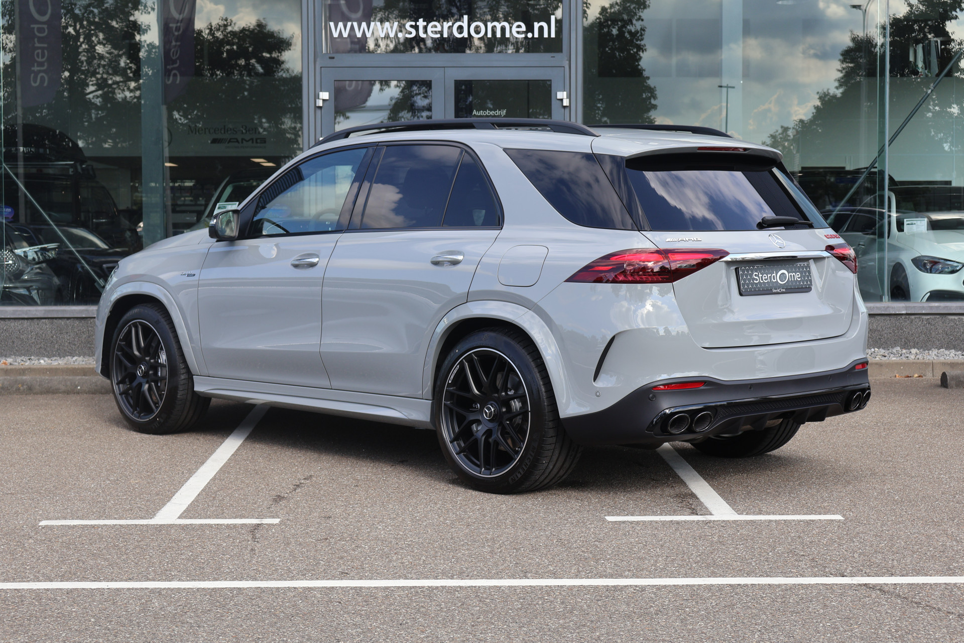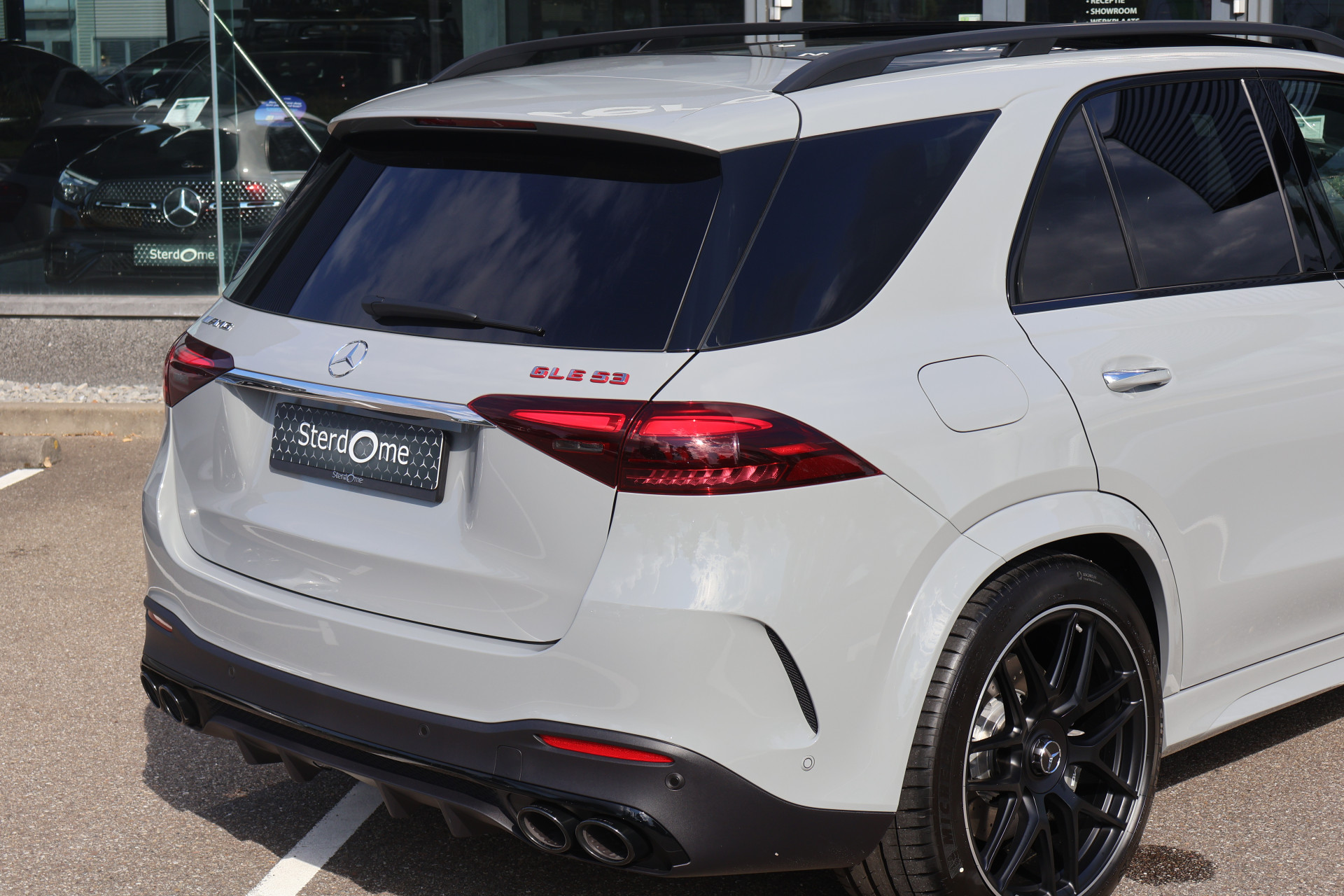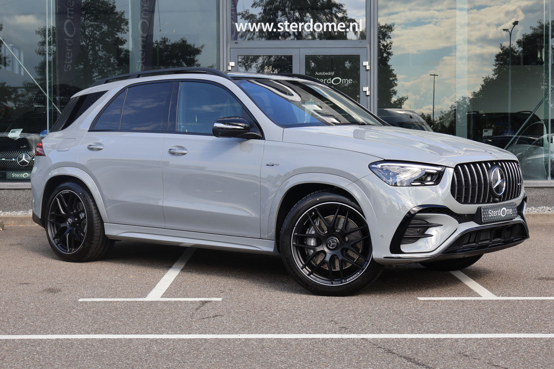 Van buiten straalt de GLE 53 Hybrid pure AMG-DNA uit: een imposante grille met verticale lamellen, sportieve bumpers, 21-inch AMG-velgen en een atletische lijnvoering.