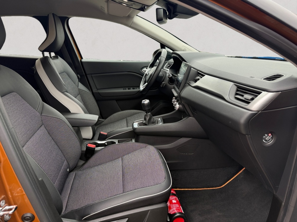 Met de electronic climate control selecteert u de gewenste temperatuur. Het systeem doet de rest. De meeste schade bij inparkeren komt van een randje of paaltje dat u even niet zag. Maar de parkeersensoren zien alles en waarschuwen op tijd. De auto neemt u werk uit handen doordat hij zelf veel in de gaten houdt. Een regensensor en een automatisch inschakelbare verlichting nemen waar wanneer de ruitenwissers en het licht aan moeten. Cruise control is aanwezig; prettig voor de lange einden. Geen capriolen meer als u met armen vol de auto moet openen. De keyless entry heeft u al herkend en ontgrendelt de Renault Captur automatisch. Wat u ook in deze auto kunt vinden zijn DAB ontvangst, automatisch dimmende spiegels, lederen stuur, boordcomputer en lederen versnellingspook.