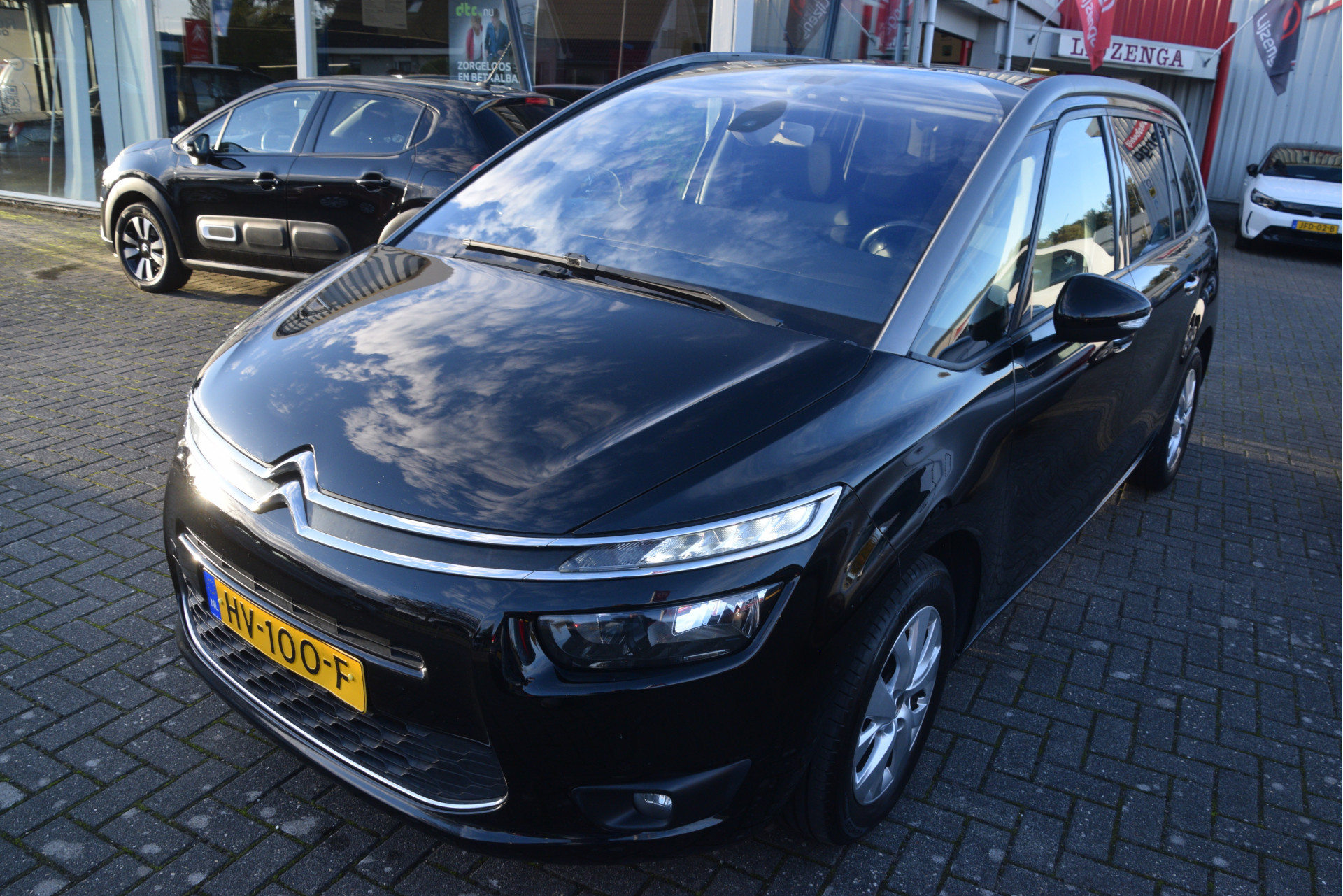 Prachtige Citroën Grand C4. Deze ruime, praktische gezinswagen met hoge instap is o.a. voorzien van navigatie, Bluetooth, trekhaak, licht metalen velgen en parkeersensoren.