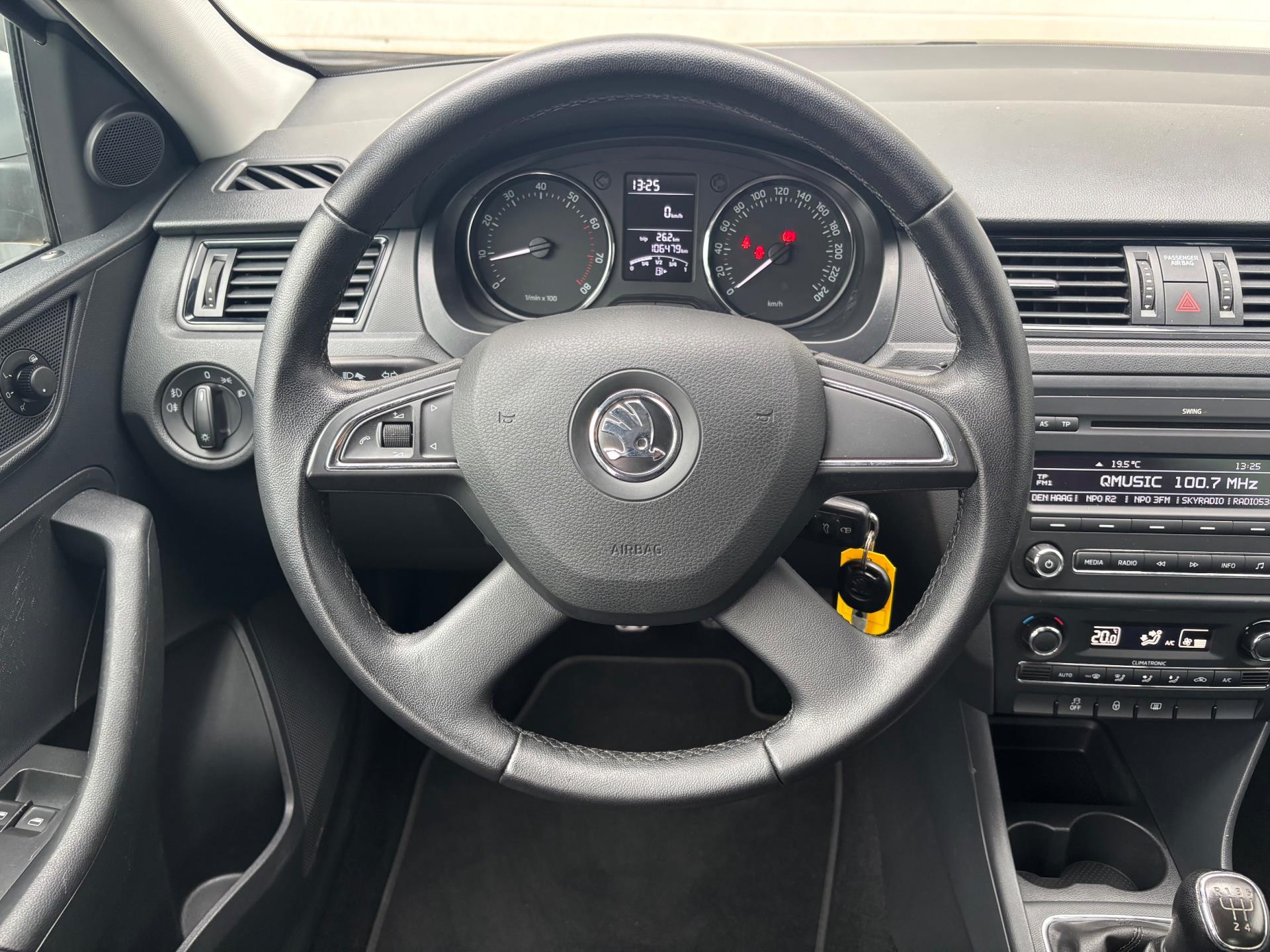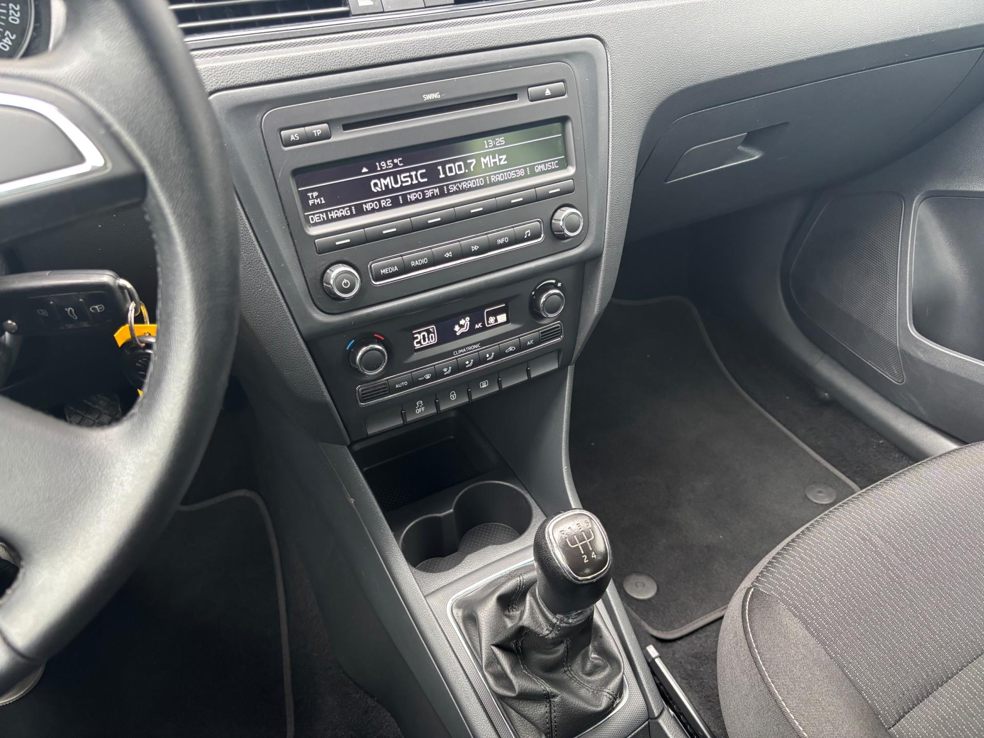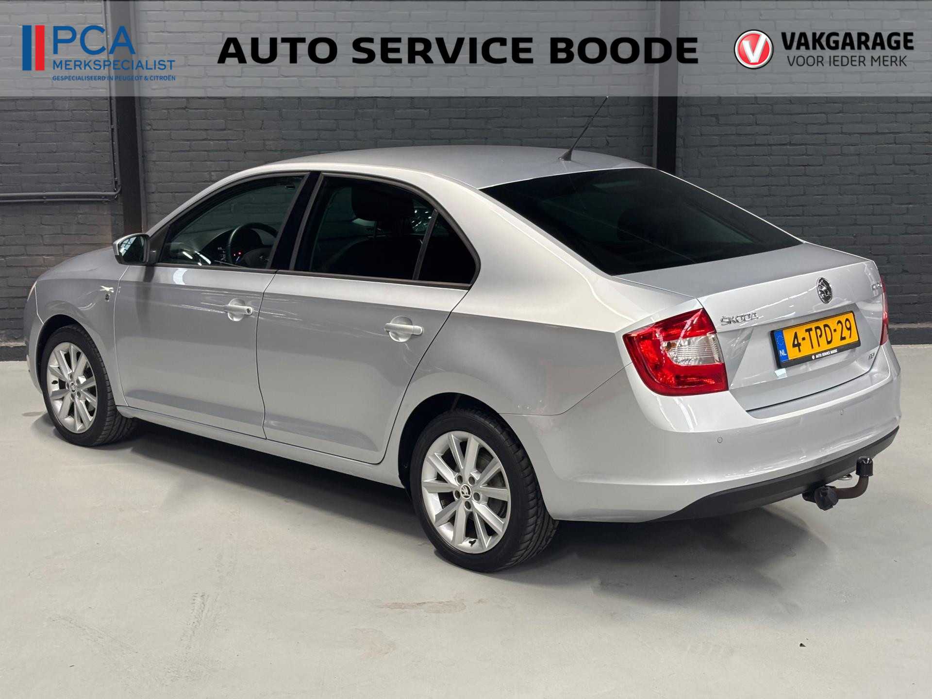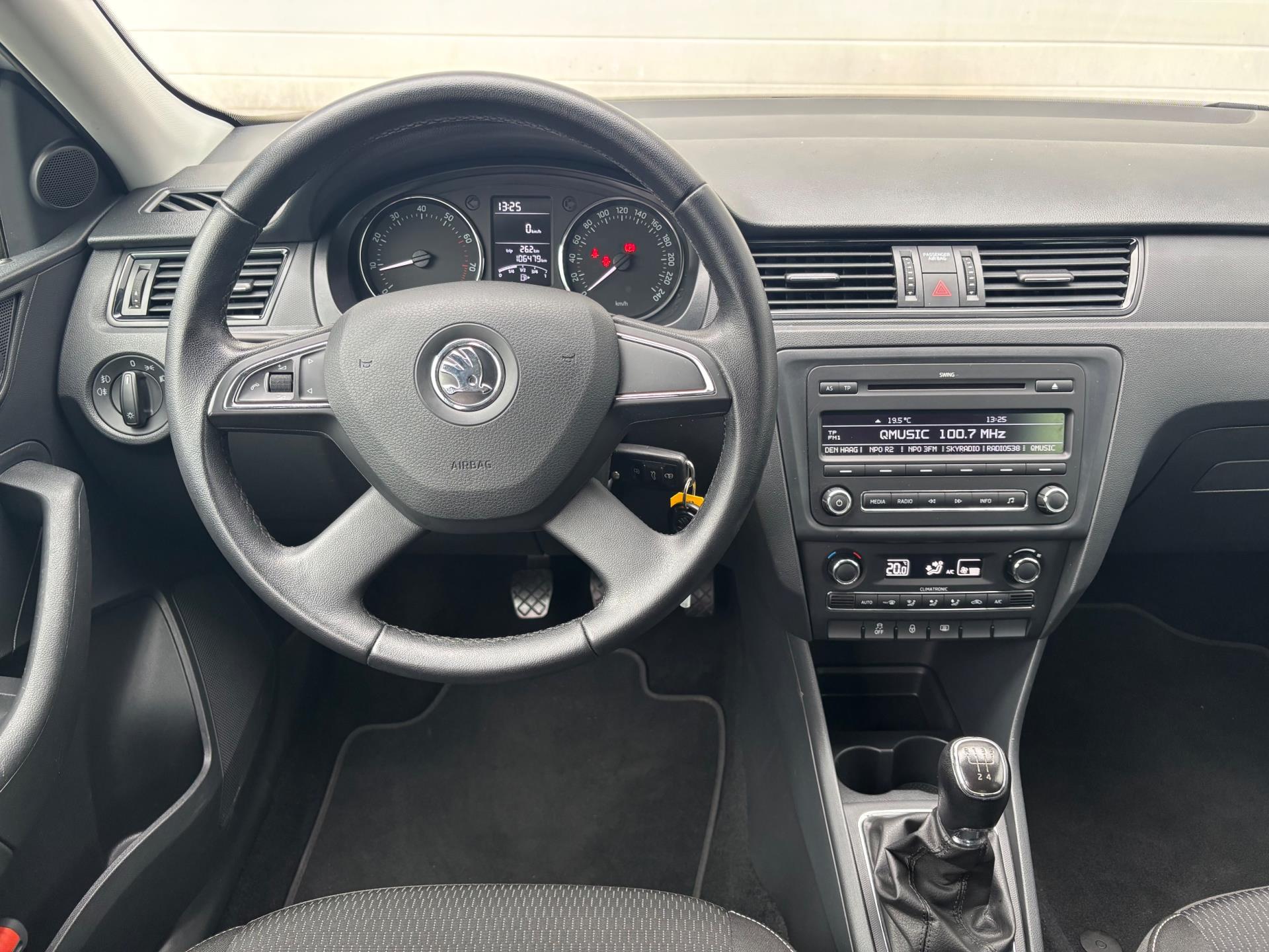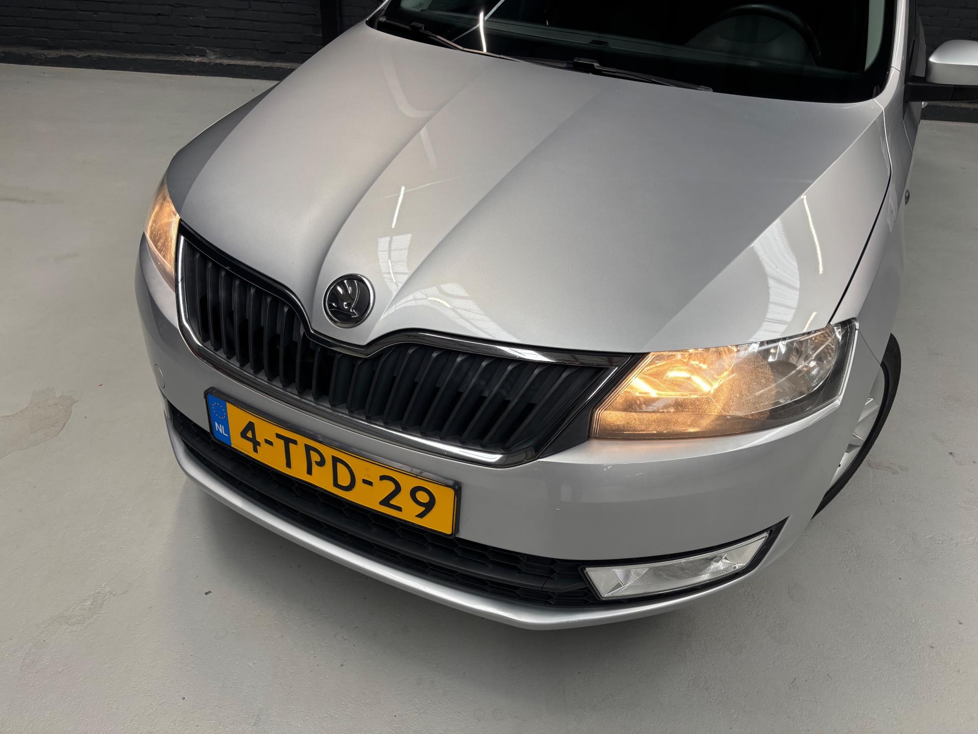 Keurige Skoda Rapid met zuinige 1.2 turbomotor (met 86 pk). Deze Rapid is onder andere voorzien van climate control, parkeersensoren in de achterbumper, 16 inch lichtmetalen velgen, extra getinte achterzijruiten, en een trekhaak.