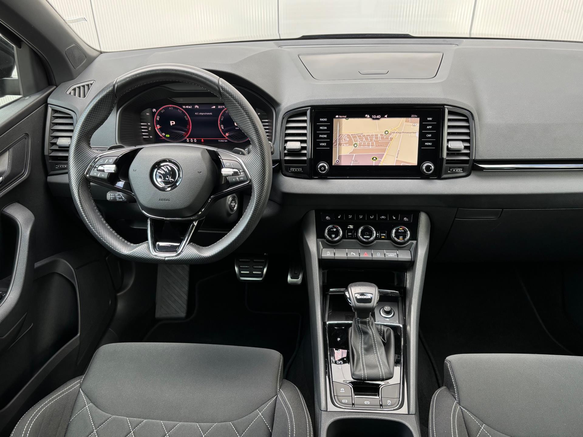Zeer nette en complete Skoda Karoq met 1.5 liter benzinemotor met 150 pk, gekoppeld aan een 7-traps volautomaat. In de sportieve Sportline uitvoering is deze auto o.a. voorzien van achteruitrijcamera, adaptieve cruise control met stop & go, touchscreen navigatiesysteem, ondersteuning van Apple Carplay en Android Auto, carbonafwerking in interieur, DAB+ radio, dakrails, digitale cockpit, draadloze telefoonlader, hill-hold functie, keyless entry & start, lichtmetalen velgen 18 inch, parkeersensoren voor + achter, sportstoelen, sportstuur, stoelverwarming, en stuurverwarming.