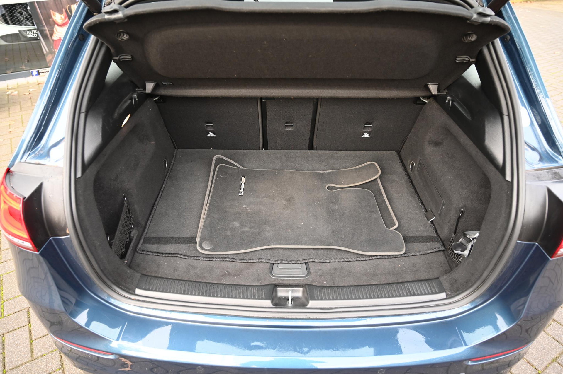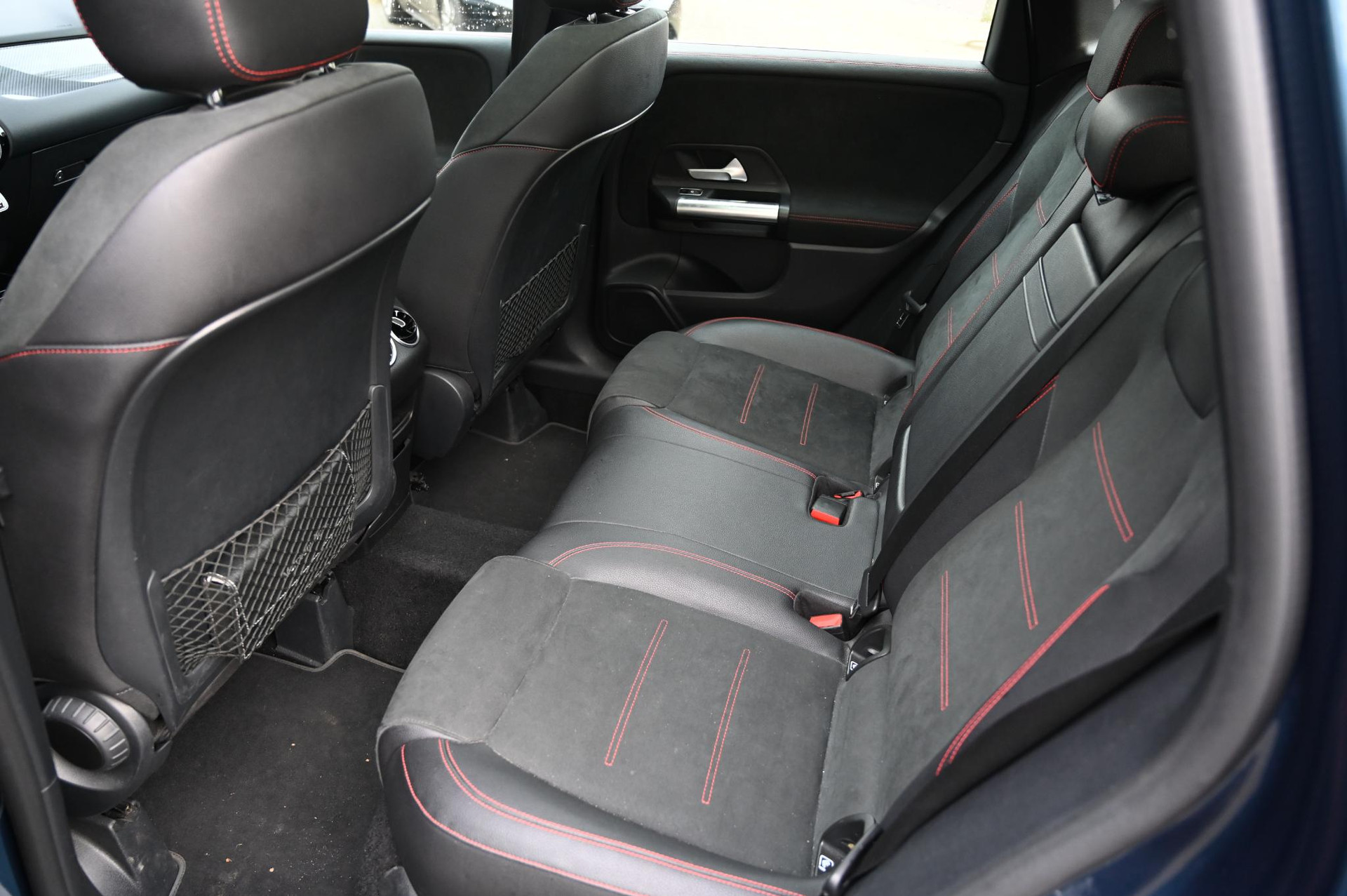 Een zeer complete en goed onderhouden Mercedes-Benz B 200 AMG Line uit 2019, uitgevoerd in de stijlvolle metallic kleur Denimblauw met zwart/antraciet halfleder/stof interieur. Voorzien van talloze luxe opties, moderne assistentiesystemen en het gewilde AMG Line-pakket.
