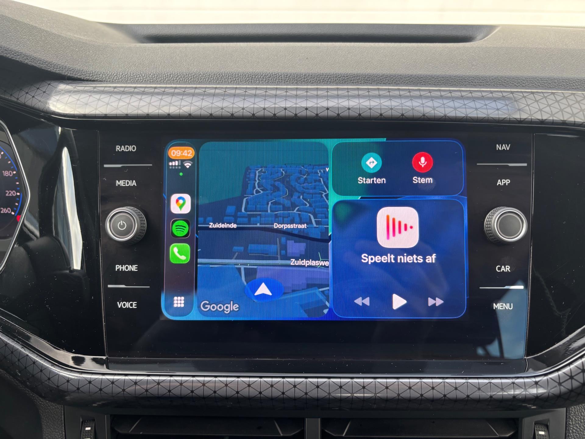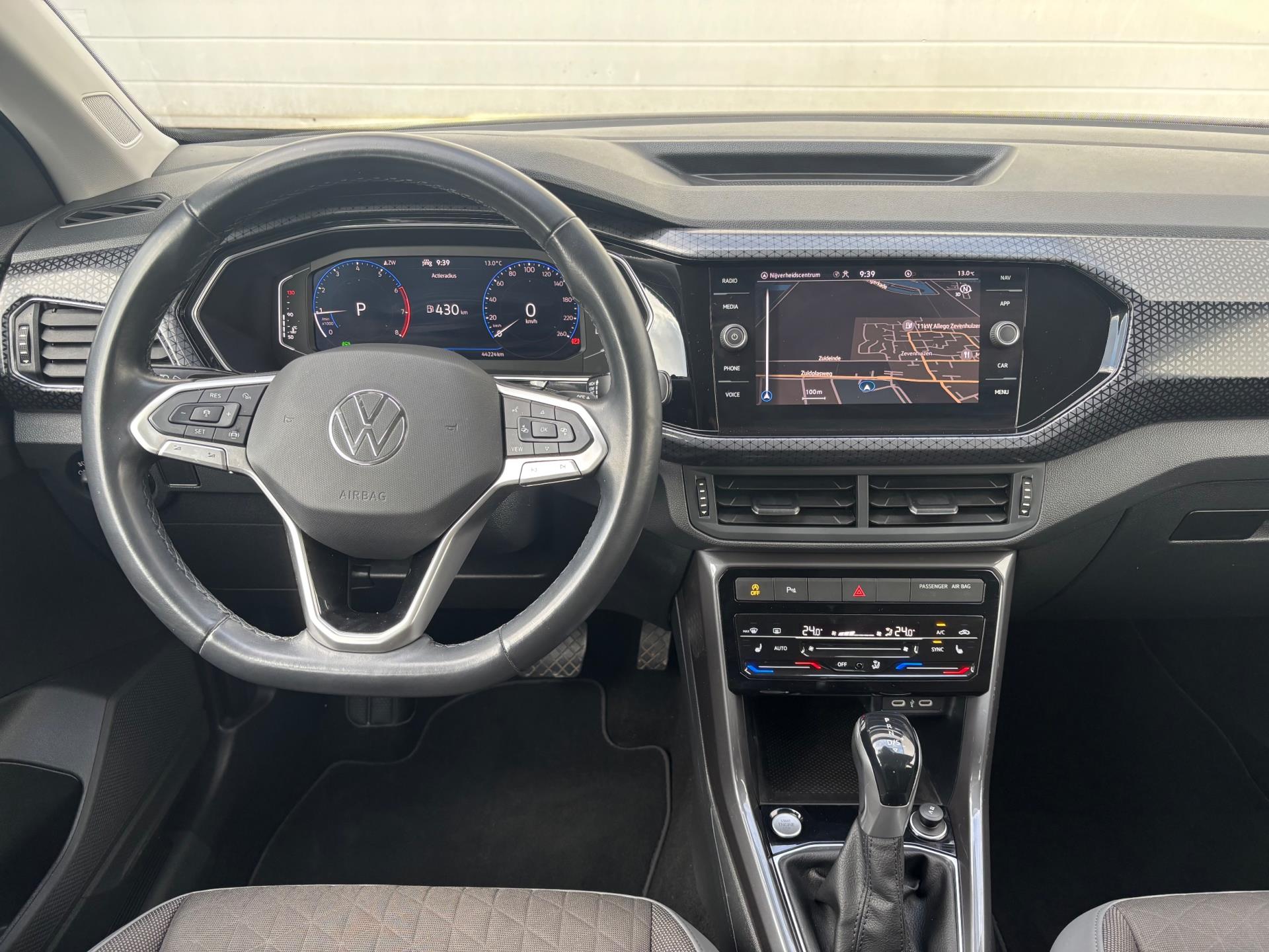 Leuke VW T-Cross met 110 pk sterke benzinemotor, gekoppeld aan een soepele automatische versnellingsbak. In de Style -uitvoering, o.a. voorzien van full LED verlichting, achteruitrijcamera, half (kunst) lederen bekleding, 5-spaaks 17 inch lichtmetalen velgen, volledig digitaal instrumentenpaneel, touchscreen audiosysteem (i.c.m. DAB-radio, Bluetooth-carkit, stuurbediening, en ondersteuning van Apple Carplay en Android Auto), parkeersensoren voor + achter (met visuele weergave op het touchscreen), climate control, keyless entry + start, navigatiesysteem, verkeersborddetectie en verwarmbare voorstoelen. Met behulp van Apple Carplay en Android Auto kan onder andere het navigatiesysteem van een smartphone op het touchscreen bediend en getoond worden.