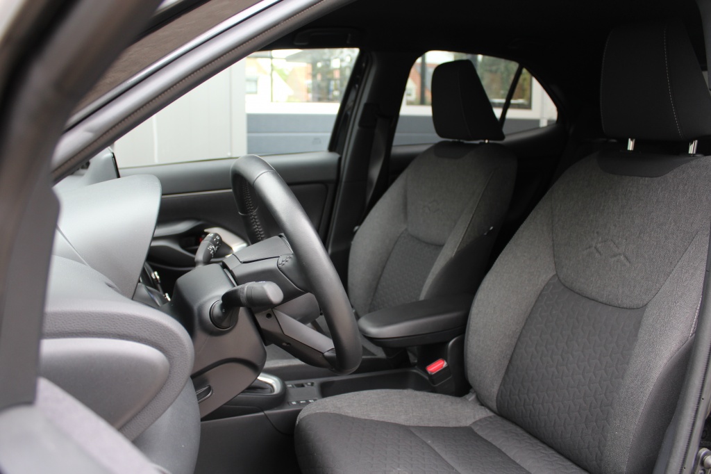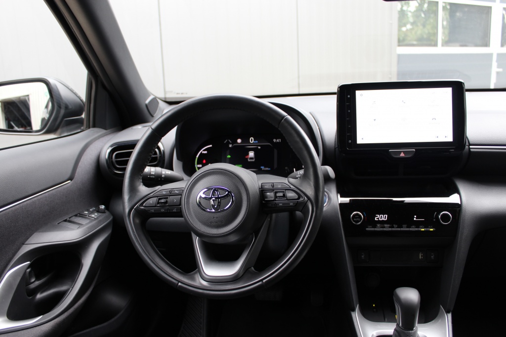 Deze stoere Yaris Cross combineert een hoge instap met een zuinige hybride aandrijving. De nieuwe hybride krachtbron haalt in de praktijk gemakkelijk een gebruik van 1:23. De hoge zit maakt in en uitstappen gemakkelijk en geeft veel overzicht in de auto. De LED koplampen geven helder licht voor goed zicht in het donker. De LED achterlichten en spatbordverbreders geven de auto een stoer uiterlijk. Het multimedia systeem heeft naast de radio ook een DAB ontvanger en muziek streamen via bluetooth. Met Android auto/Apple Carplay kan je ook Spotify bedienen en navigeren via Google Maps of Waze. Met de my Toyota app kan je auto zien waar je auto is, hou je het brandstofverbruik in de gaten en kan je ook op afstand de airco aanzetten. Verder beschikt de auto over het Toyota safty sense maakt deze auto extra veilig met: Automatisch groot licht, Pre-Crash automatisch remmen, de verkeersbord herkenning laat zien wanneer u te hard rijdt, Line keeping assistent geeft een signaal als u buiten de lijnen komt, middenbaan sturing houdt de auto automatisch in het midden van de rijbaan, radar cruis controle bewaakt de afstand met u voorganger en laat de auto zelf remmen als u voorganger afremt, file assistent laat ook in de file uw voorganger volgen.