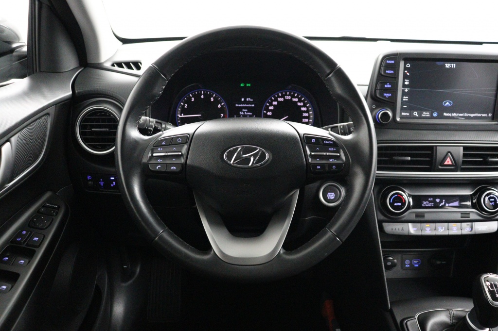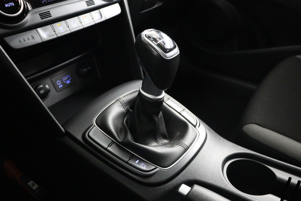 Veiligheid staat voorop in de Hyundai Kona, met onder andere hoofd airbags achter die zorgen voor extra bescherming van de inzittenden. Ook de lederen versnellingspook draagt bij aan het comfort en de luxe uitstraling van de auto.