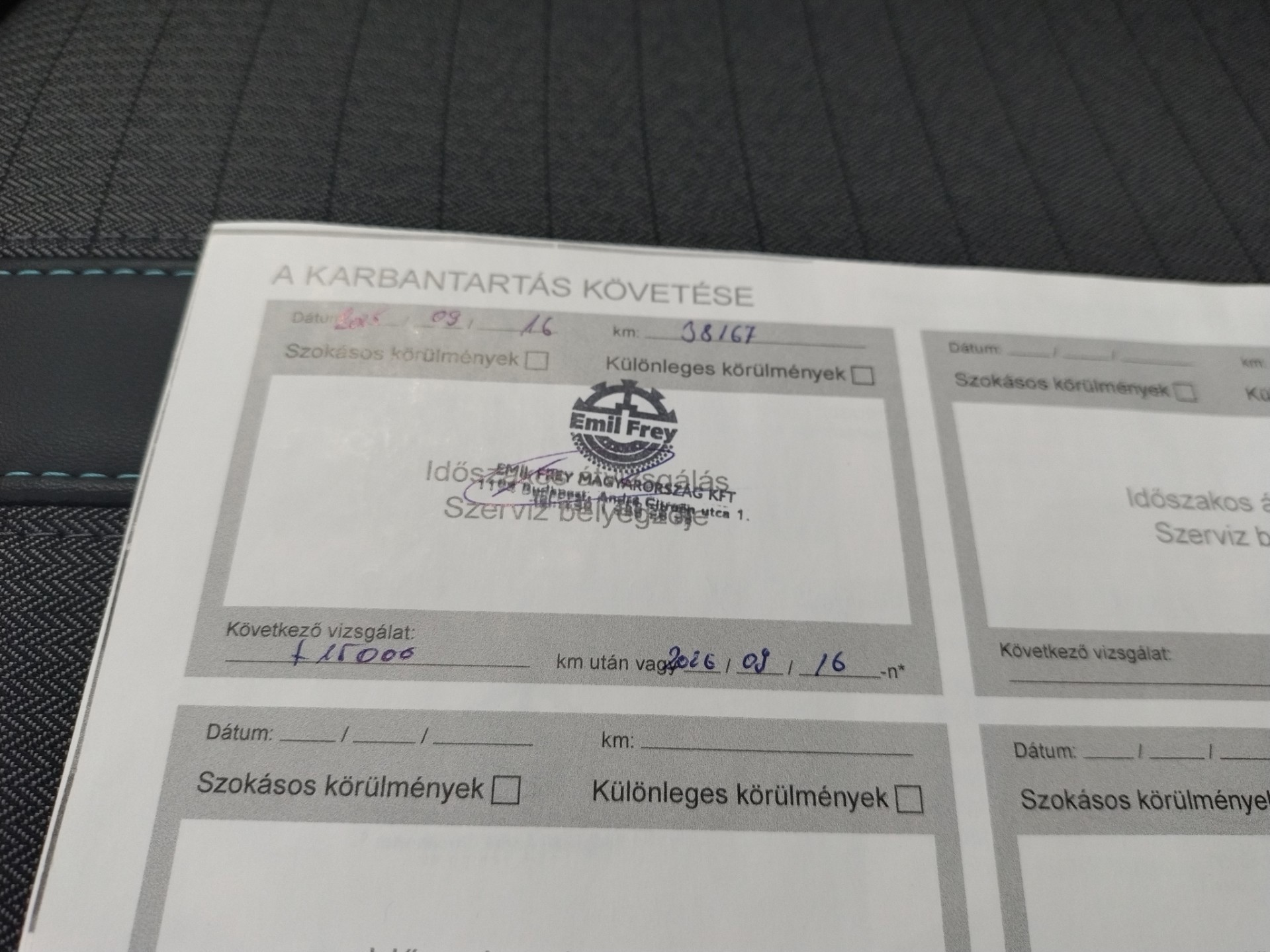 De onderhoudsboekjes zijn aanwezig en gestempeld, en ook de onderhoudsfacturen zijn aanwezig. De onderhoudshistorie ziet er als volgt uit. Er is onderhoud uitgevoerd bij 13.851 km op 27-8-2024 (o.a. motorolie, oliefilter en interieurfilter vernieuwd), bij 25.601 km op 15-1-2025 (o.a. motorolie, oliefilter, bougies, interieurfilter, luchtfilter en remvloeistof vernieuwd), en bij 38.167 km op 17-9-2025 (motorolie, oliefilter en interieurfilter vernieuwd).