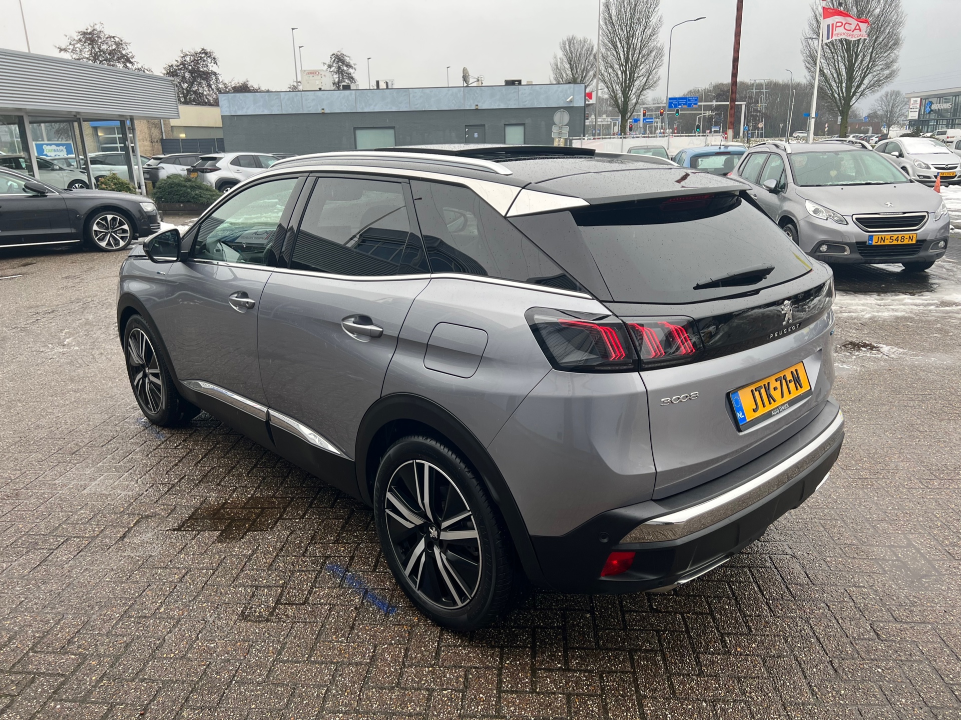 Peugeot is al jaren een van de meest solide automerken. Met Frans gevoel voor design en rijgevoel. Motion & Emotion. De aandrijving van deze Peugeot wordt verzorgd door een viercilinder motor en een automatische transmissie. Ga samen met uw bijrijder lekker zitten in de verwarmbare voorstoelen. Wat een licht geeft dat glazen elektrisch bedienbare panoramadak. Een praktische extra is de elektrisch bedienbare achterklep die opent en sluit met een druk op de knop. Tot de uitrusting van deze Peugeot behoren ook 18 inch lichtmetalen velgen, adaptieve verlichting, extra getint glas, in delen neerklapbare achterbank, LED-achterlichten en verstelbare lendensteunen.