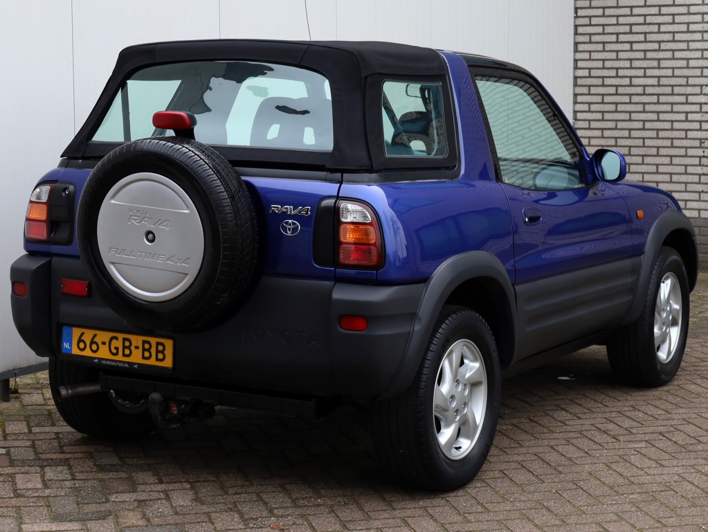 Zeer mooie, zeldzame cabrio SUV. Deze unieke Toyota FunCruiser RAV4 is origineel in Nederland geleverd en is zowel van binnen als van buiten in zeer nette staat. Geweldige uitstraling in Electric Blue metallic met bullbar verstralers en originele licht metalen velgen. Het groot onderhoud waarbij onder andere de distributieriem, waterpomp en bougies zijn vervangen hebben wij reeds uitgevoerd. Bovendien is deze auto voorzien van een nieuwe soft top. GRATIS 3 MAANDEN GARANTIE OP DE MOTOR EN VERSNELLINGSBAK, BEURT, TENAAMSTELLING EN NIEUWE APK! Bent u geïnteresseerd in deze auto, neem dan gerust contact met ons op voor een bezichtiging en/of overtuigende proefrit.