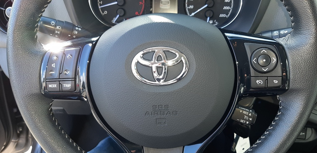 Wat deze Yaris extra speciaal maakt, zijn de verschillende handige opties die het rijden nog plezieriger maken. Zo zijn de buitenspiegels in dezelfde grijze kleur als de carrosserie, wat zorgt voor een naadloze en stijlvolle uitstraling. Daarnaast beschikt deze auto over cruise control, ideaal voor lange afstanden waarbij u ontspannen kunt blijven rijden.