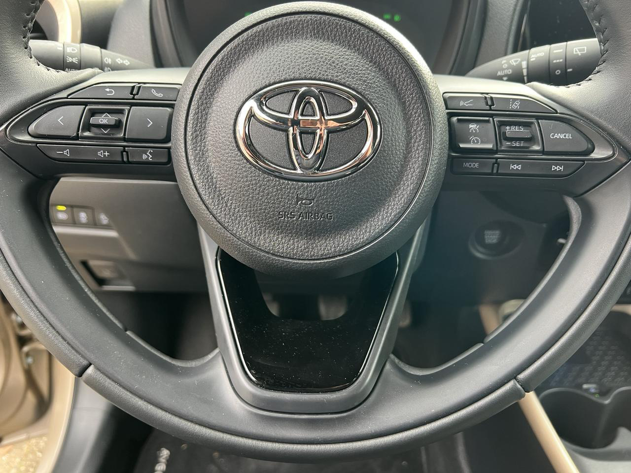 Wij kunnen eigenlijk niet meer spreken van onze kleinste telg in het gamma, maar u kijkt hier naar de Aygo X. In een supergave 2-tone kleurstelling; Ginger Beige & Astral Black.